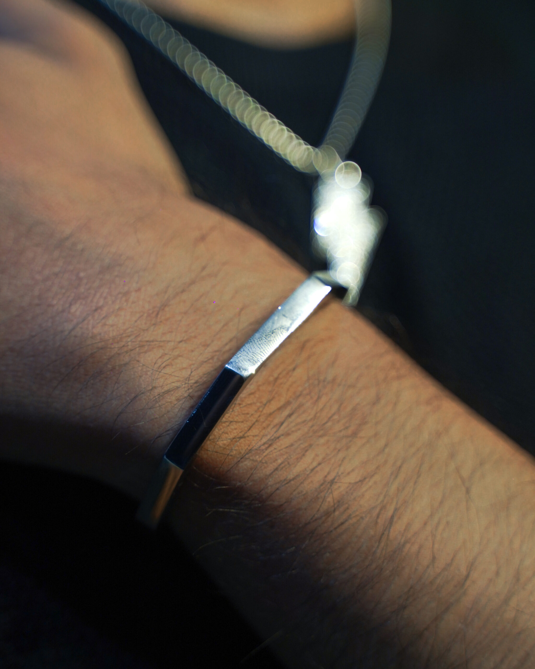 Sleek silver bracelet with geometric cubic design